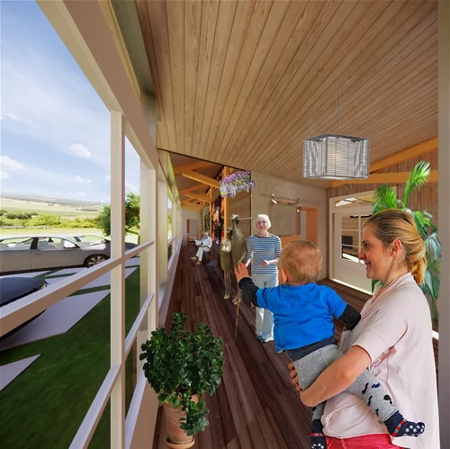 Each space in the dwelling design is capable of flexing to reach any level of accessible living. As the family dynamic changes flexing helps meet the needs of the extended family. Option for well aged living are a fundamental design principle.